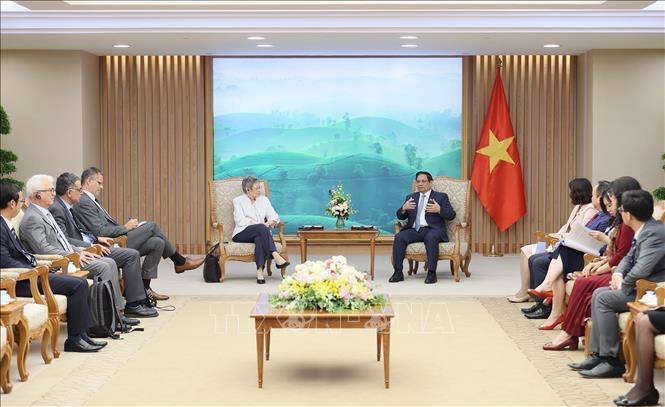 프랑수아 바레 시누스(Francoise Barre-Sinoussi) 교수를 접견한 팜 민 찐 총리 (사진: 베트남 통신사) |