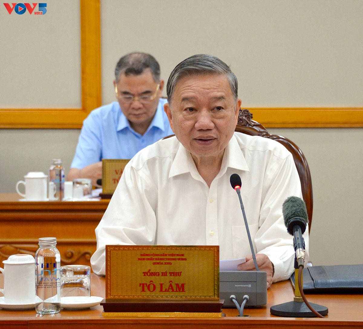 회의에서 발표하는 또 럼 당 서기장 |