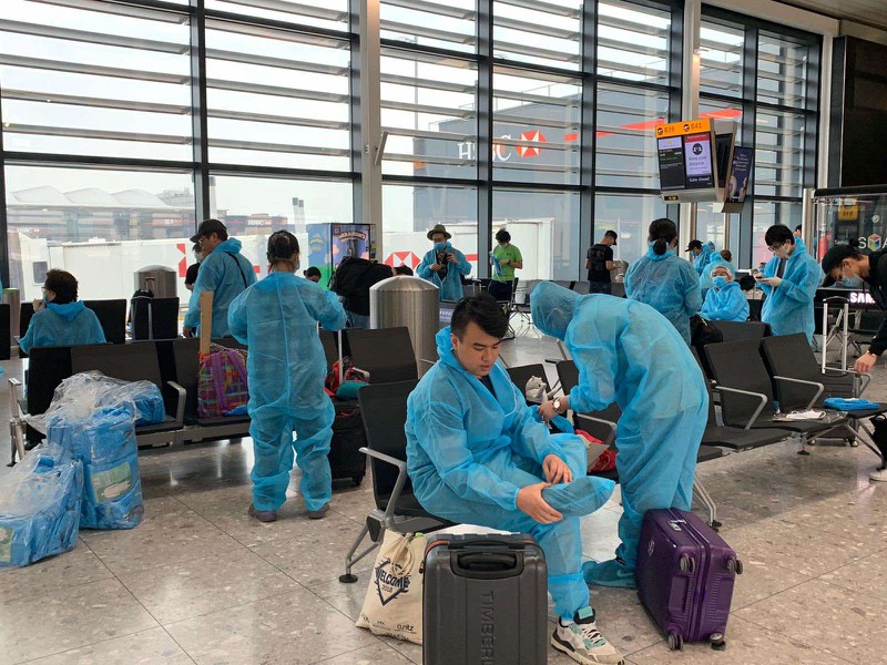 영국발 베트남 귀국민의 모습 |