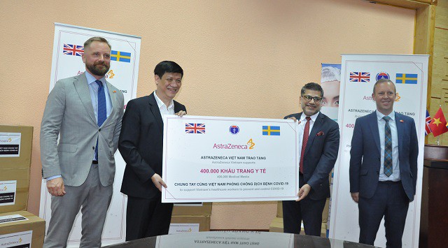(유) AstraZeneca 회사는 보건부에게 마스크를 전하는 모습 (사진: 보건부) |