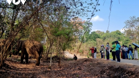 (VOVWORLD) - 관광객들이 닥락(Đắk Lắk)성 부온돈(Buôn Đôn현 욕돈(Yok Đôn) 국립공원에 가면 숲에서 코끼리의 일상 생활을 지켜보면서 코끼리가 먹고 마시고 목욕하고 숲에서 산책하는 모습을 멀리서 구경할 수 있다. 이것은 거의 6년 동안 욕돈 국립공원에서 전개하고 있는 코끼리 친화 여행 프로그램 활동이다.