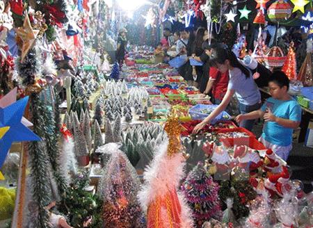 램프, 종, 순록, 솔방울, 금실 리본으로 장식한 크리스마스 트리는 100만동 (약 50불) 이상에 팔리고 있다. 크리스마스 선물 쇼핑을 나온 하노이 시민 도 튀 중 (Do Thuy Dung)은 다음과 같이 말했다: