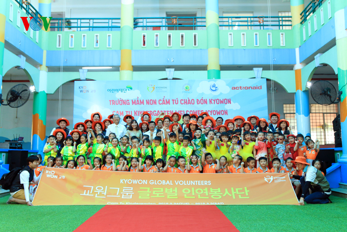 “교원봉사단” 봉사팀과 초록우산 어린이재단이 이 곳에 와서 빈떤에 위치하는 유치원 설립 프로젝트에 대한 이해를 증진하는 동시에 어린이들을 위한 활동, 문화 교류 행사를 통해 어린이의 교육 접근 권한 보장에 기여하고 있다. “교원봉사단” 봉사팀과 초록우산 어린이재단은 껌두 유치원 교사들과 같이 유치원 교실의 벽 장식, 유치원 공간 정리, 장난감과 학용품 제작 그리고 한국과 베트남 양국 이해 강화 관련된 문화 교류에 대한 게임, 활동 등을 진행했다. 이 외에 봉사단은 어린이들을 위한 벽그림 그리기, "Story Phonics" 교과서의 베트남어 번역 등의 많은 봉사활동을 했다. 이번 프로그램을 통하여 교원회사에서 껌두 유치원의 교사와 유치원생들에게 새로운 지식을 습득할 수 있도록 600 개의 교과서를 증정하였다.