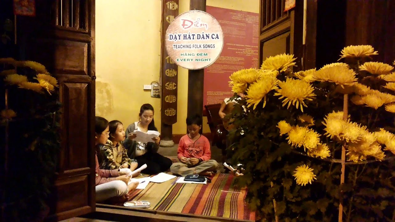 문화체육센터는 휘히에우 (Huy Hiệu) 중학교와 함께 이 민요 수업을 10년 동안 열어 왔습니다. 학생들이 마음을 열고 민요를 매우 즐거워하고 사랑합니다. 저녁마다 모든 학생들이 모여서 노래를 배우면서 관광객들에게 공연도 합니다. 3개월마다 수업은 종강식을 열고 학생들에게 학습용품 등을 수여합니다. 선물을 받으면 그들이 매우 기뻐하고 수업에 계속 적극적으로 참여합니다.