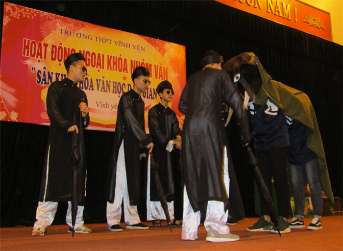 빈옌고등학교 학생들이 "점쟁이가 코끼리를 본다"라는 민담을 무대극화하는 장면 (사진: http://vinhphuc.edu.vn)