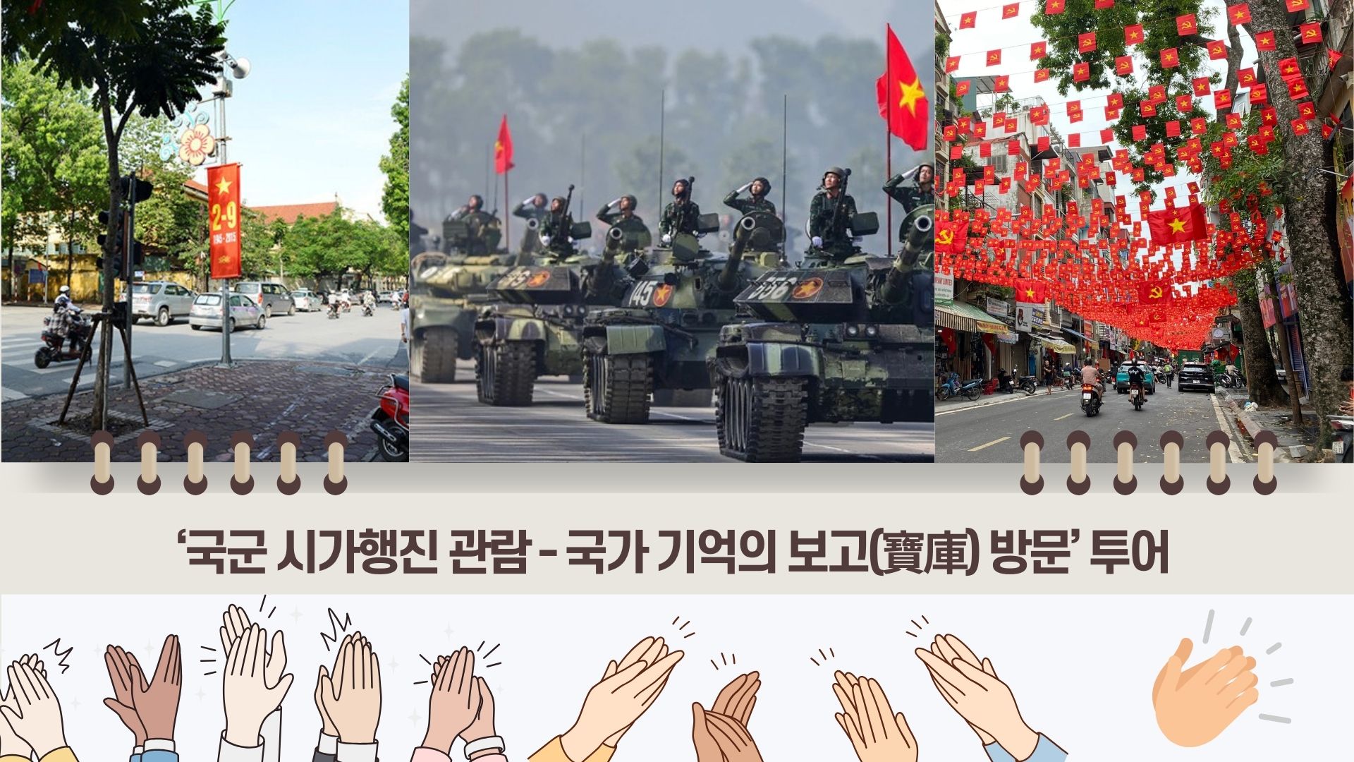 홍응옥: 이 투어는 바딘 광장의 축제 분위기를 직접 체험하고, 더 깊은 역사적 경험을 할 수 있도록 기획된 1박 2일 일정입니다. 특히, 국군 시가행진 장소 인근에 있는 4성급 호텔에 머물기 때문에 이 중요한 행사의 어떤 순간도 놓치지 않고 편리하게 즐길 수 있다는 점이 가장 큰 장점입니다.