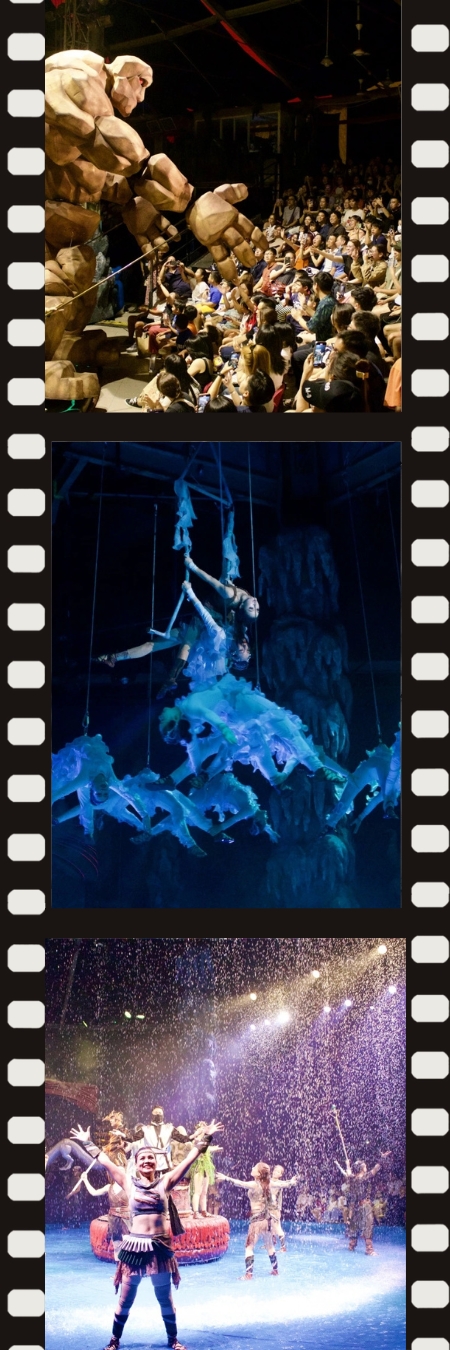 경민: 서커스 '신비로운 땅'는 뛰어난 공연 예술, 현대적인 무대 기술, 짜임새 있는 극본, 생생한 음향, 그리고 3D, 홀로그램, LED와 같은 첨단 조명 기술의 화려한 조화를 통해 관객들의 마음을 사로잡았습니다. 이 공연은 잔잔함부터 폭발적인 감동까지 넓은 폭의 감정을 느끼게 하며 'Trống gọi Trời'(쫑 고이 쩌이 – 하늘을 부르는 북소리) 전설에 따라 다섯 개의 오행석을 찾기 위해 낯선 땅을 탐험하고 수많은 난관을 헤쳐 나가는 흥미진진한 스토리로 관광객들을 이끌어 갑니다.
