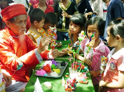A: To He, or toy figurine, is a traditional toy that Vietnamese children are exceedingly fond of. Dating back to the 17th century, To He are made of glutinous rice powder in the form of edible figurines of animals, flowers and characters from folk tales. The craft evolved to entertain children during festivals.It was a forerunner of comic books.Craftsman plied their trade from place to place, skillfully bringing to life the colorful characters of ancient folklore.