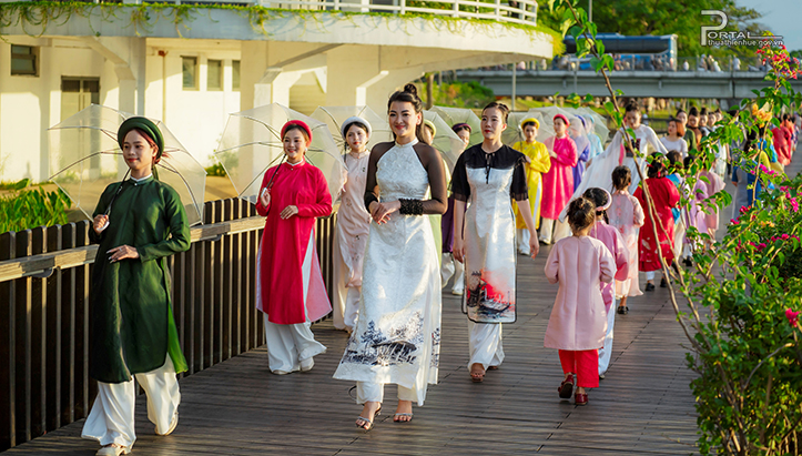 A street performance during the Ao dai Week in Thua Thien-Hue in June, 2024 (photo: thuathienhue.gov.vn) |