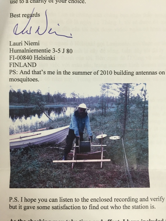 B: Lauri told us that last October he and his friend Markku Jussila used a Perseus multi-channel receiver connected to an ACER laptop. The conditions were good, nearly excellent, and he heard hundreds of new stations including VOV.