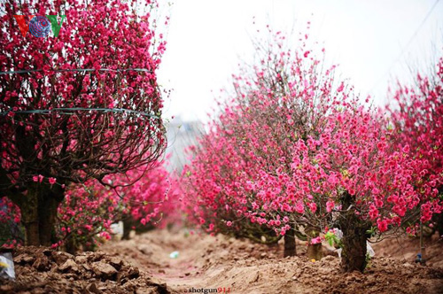 | Peach blossom in Nhat Tan flower village in Hanoi |