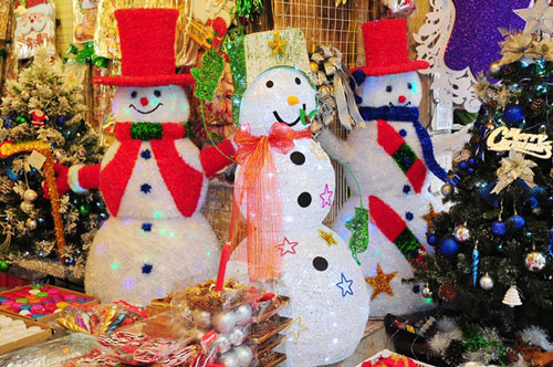A: Vietnam is a tropical country, so we don’t have real pine trees. Plastic trees of all sizes are used instead to decorate offices and homes. Streets that sell decorative items for festivals - Hang Ngang, Hang Dao, Hang Ma, and Hang Chieu – are now selling Christmas trees, sparkling ornaments and lights, holly wreaths, and Santa Claus costumes.