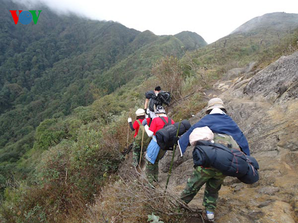 B: On the second day, the trek continues through bamboo forests and flat grass lands for an hour and then climbs a very steep slope for an hour and a half to reach the summit, the roof of Indochina at an elevation of 3,140m. On a nice day, a great view of a superb region extends below you all the way to China.