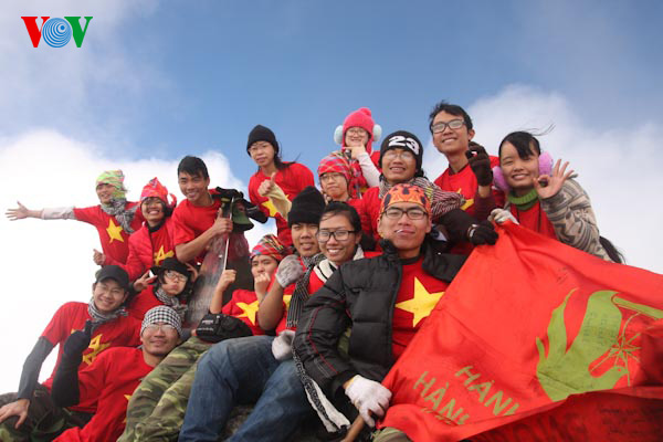 ![]() The adventurers bust of happiness on the summit of the "roof of Indochina" |