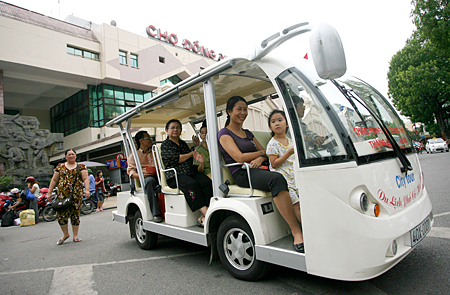 An electric car carries tourists to Dong Xuan market (Photo: vietnamonline.com) |