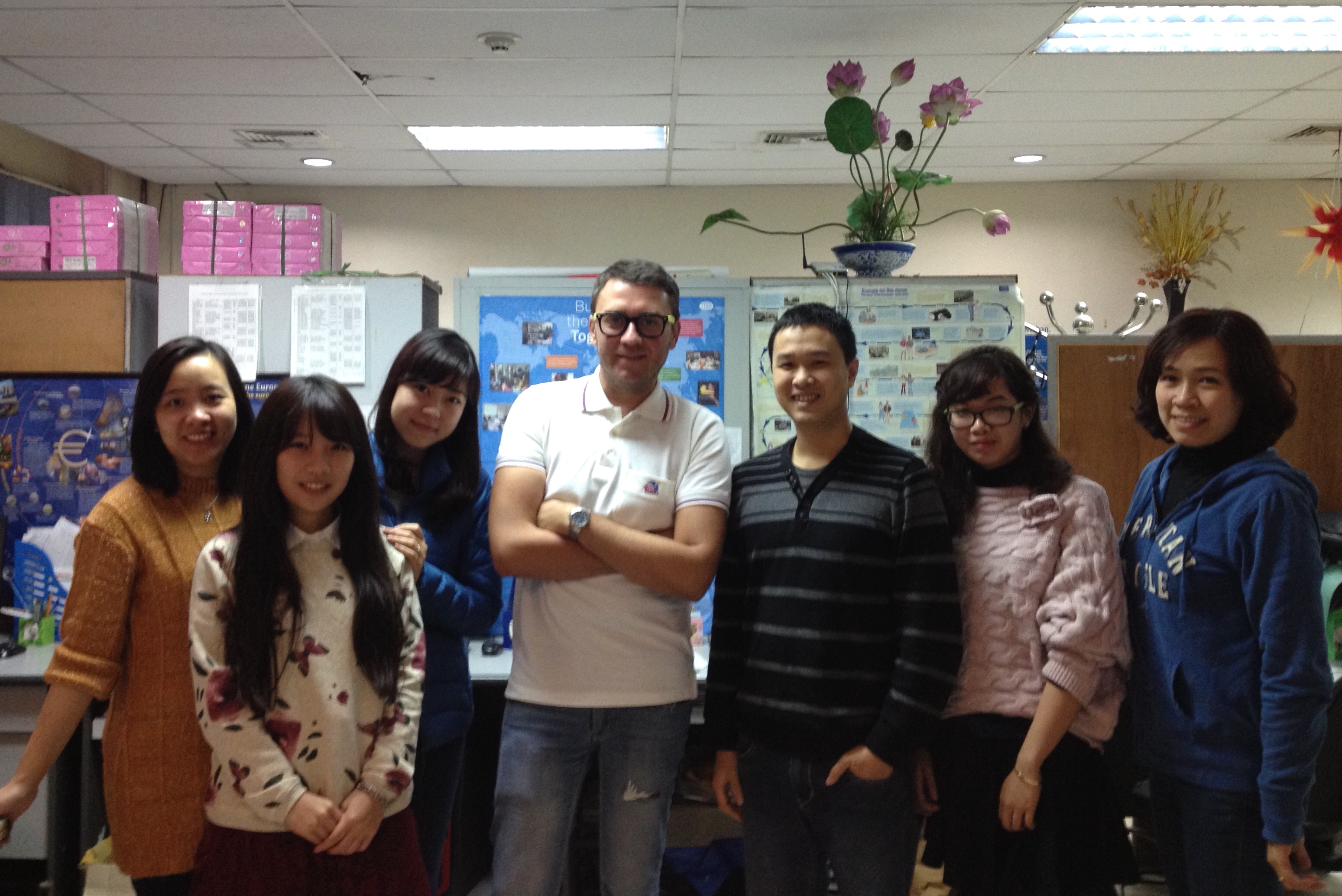 Maxim Kochergin (in the center) and some of VOV's staff at VOV's English Office