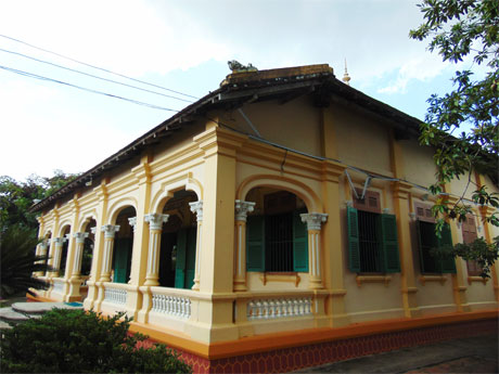 A: A second popular destination in Dong Hoa Hiep is Nguyen Van Duc's house which was built in 1850 with a blend of Oriental and Western architecture. The front of the house was constructed in the French style with round Western pillars and romantic domes whereas the inside was designed in a traditional Vietnamese style.