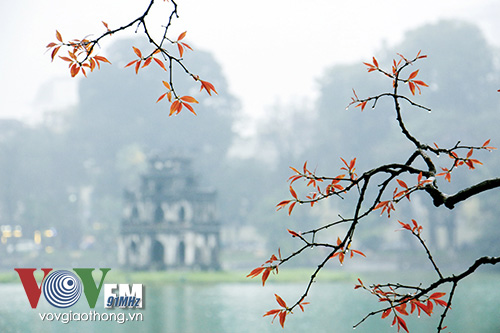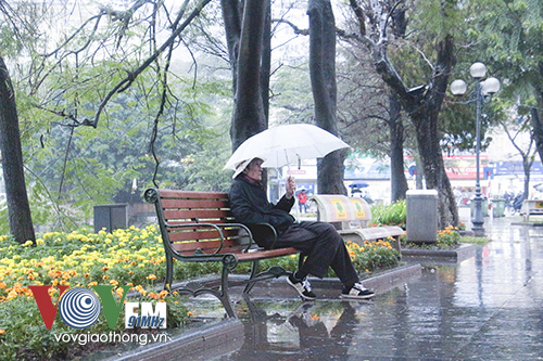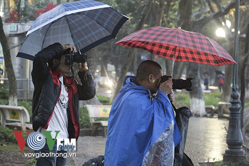 | People prefer to take photos of Hoan Kiem lake in the rain |