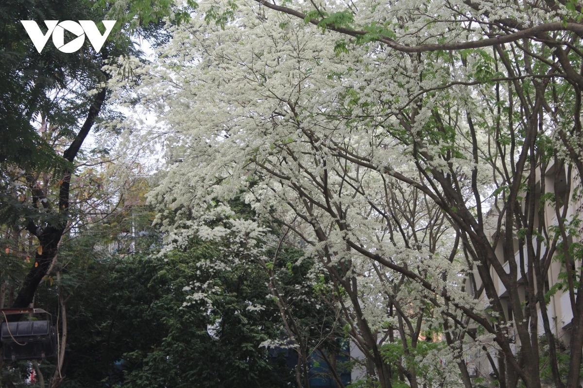 Sưa flowers bloom in Hanoi in March, covering the streets with clusters of pure white petals. (photo: VOV)