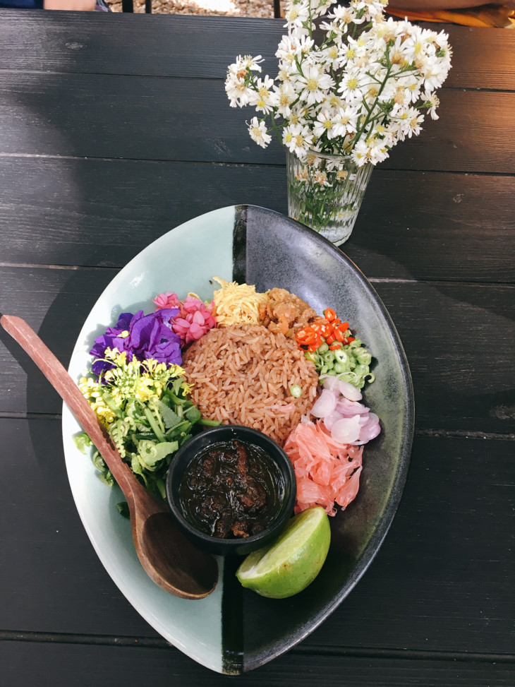 B: The fermented fish is ready to serve after 15 to 20 days. This dish is shared by family, friends, and honored guests on special occasions. It is also eaten with steamed rice every day. The recipe for the fermented fish is handed down within the village and there are some variations. The Gie Trieng in Lao Du village coat the fish with use corn flour while the Gie Trieng in other villages use fermented rice to give it a sour taste. The pot is covered with leaves and stored near a wood fire to speed up the fermentation. The sour fish is served with fresh herbs to enhance the flavor.