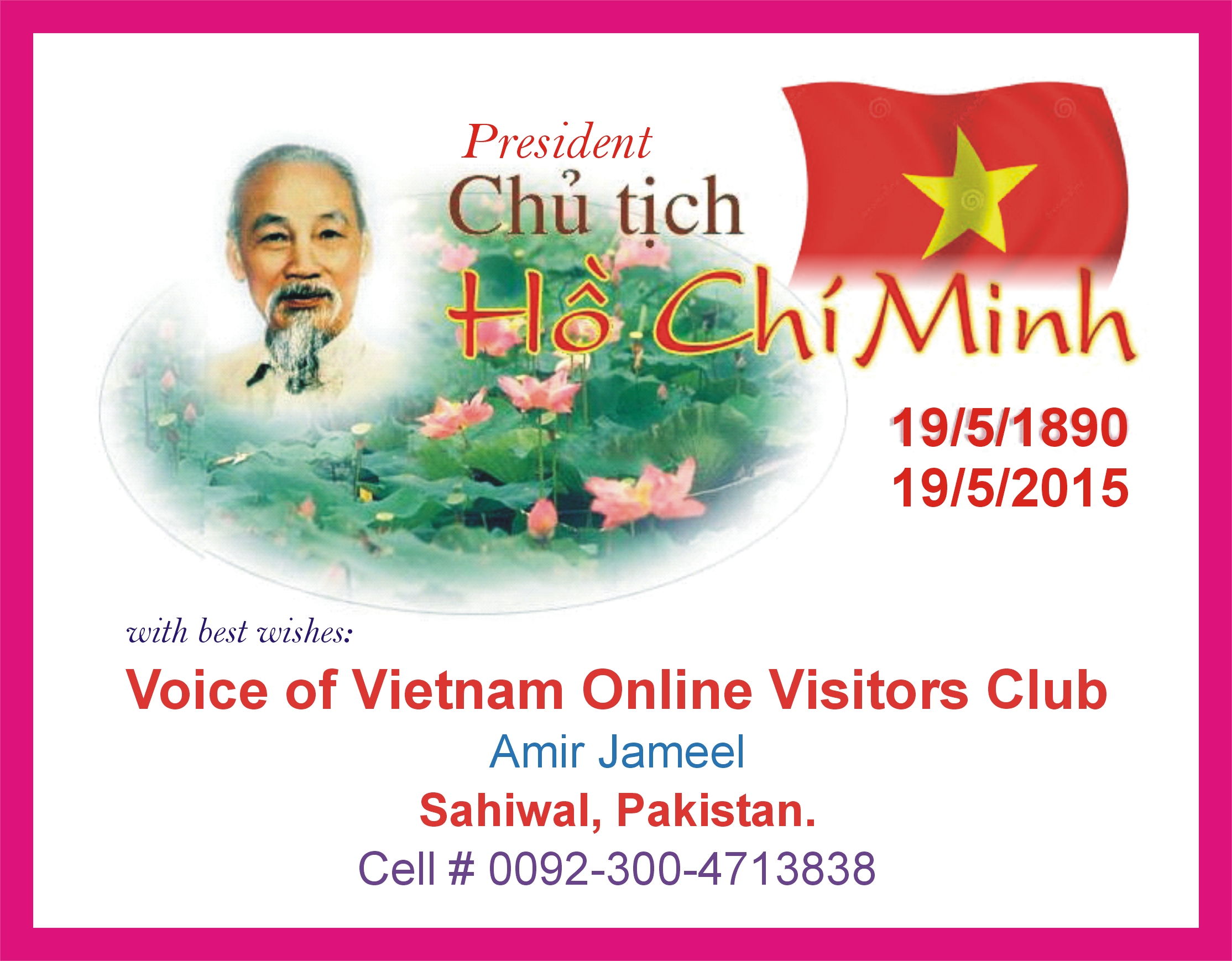 ![]() Amir Jameel, President of VOV Online Visitors Club in Pakistan, sent this congratulatory postcard to VOV on President Ho Chi Minh's 125th birth anniversary