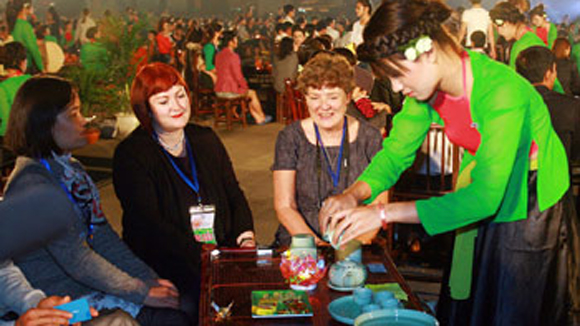![]() Foreigners enjoy tea at Thai Nguyen Tea Festival