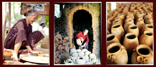 A: Thanh Ha potters are still using traditional methods. They use their foot to spin the potter’s wheel when shaping a lump of clay. Most Thanh Ha villagers know how to make pottery but it takes many years to become a master.