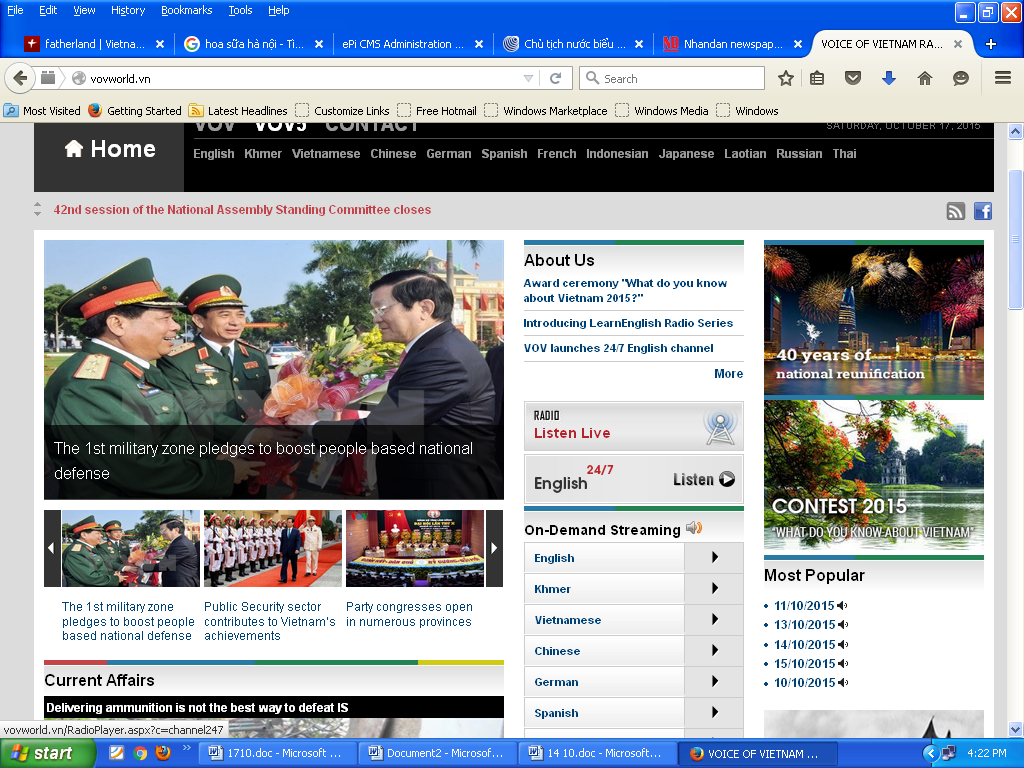 ![]() VOV 24/7 on radio channel 104 FM is available on vovworld.vn |