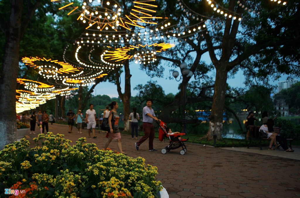 The Hoan Kiem lake is beautifully decorated on National Day (photo: Zing)