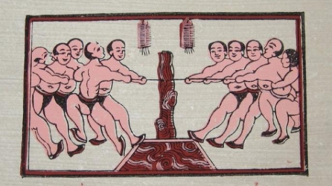 B: Tug-of-war is a folk game that appeared in Vietnam long ago and is often organized during spring festivals to pray for favorable weather, a good crop, happiness and prosperity. The tug-of-war game symbolizes the strength and unity of farmers.