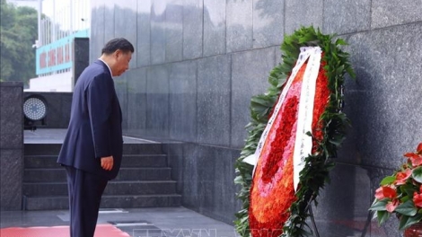 ທ່ານເລຂາທິການໃຫຍ່, ປະທານປະເທດ ຈີນ ສີຈິ້ນຜິງ ໄປວາງພວງມາລາ ແລະ ເຂົ້າຂ່ຳນັບສຸສານປະທານ ໂຮ່ຈີມິນ