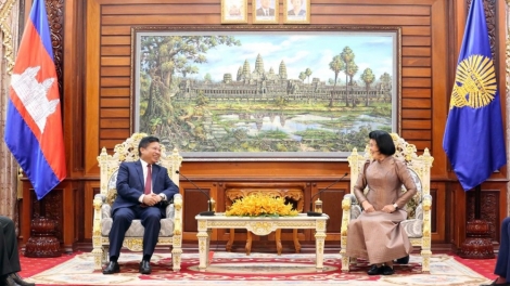 (VOVWORLD) - ວັນທີ 3 ພະຈິກ, ຢູ່ຫໍສະພາແຫ່ງຊາດ ລາຊະອານາຈັກ ກຳປູເຈຍ, ທ່ານເອກອັກຄະລັດຖະທູດ ຫວຽດນາມ ປະຈຳ ກຳປູເຈຍ, ຫງວຽນຮຸຍຕັງ ໄດ້ເຂົ້າຢ້ຽມຂ່ຳນັບ ທ່ານປະທານສະພາແຫ່ງຊາດ ລາຊະອານາຈັກ ກຳປູເຈຍ, Samdech Khuon Sudary, ພາຍຫຼັງທີ່ສະພາແຫ່ງຊາດ ກຳປູເຈຍ ຊຸດທີ VII ໄດ້ຮັບການສ້າງຕັ້ງຂຶ້ນ.