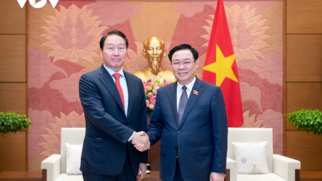 ທ່ານປະທານສະພາແຫ່ງຊາດ ຫວຽດນາມ ເວືອງດິ່ງເຫວະ ໃຫ້ການຕ້ອນຮັບ ປະທານກຸ່ມບໍລິສັດ SK