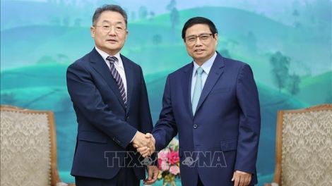 ທ່ານນາຍົກລັດຖະມົນຕີ ຟ້າມມິງຈິງ ໃຫ້ການຕ້ອນຮັບທ່ານຮອງປະທານ, ຜູ້ອຳນວຍການໃຫຍ່ທົ່ວໂລກຂອງກຸ່ມບໍລິສັດເຕັກໂນໂລຢີ Amkor