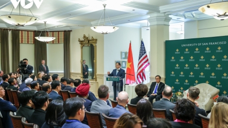 (VOVWORLD) - ກ່າວຄຳເຫັນເມື່ອຢ້ຽມຢາມມະຫາວິທະຍາໄລ San Francisco, ທ່ານນາຍົກລັດຖະມົນຕີ ຟ້າມມິງຈິງ ເນັ້ນໜັກວ່າ: ຫວຽດນາມ ກຳນົດການສຶກສາແມ່ນລັດຖະນະໂຍບາຍແຖວໜ້າດ້ວຍແຜນນະໂຍບາຍຊຸກຍູ້ການຮ່ຳຮຽນຕະຫຼອດຊີວິດ; ບຳລຸງສ້າງແຫຼ່ງຊັບພະຍາກອນມະນຸດທີ່ມີຄຸນນະພາບສູງແມ່ນໜຶ່ງໃນ 3 ຂອດບຸກທະລຸຍຸດທະສາດ…