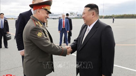 (VOVWORLD) -ວັນທີ 17 ກັນຍາ, ສຳນັກຂ່າວສານສູນກາງ ສປປ ເກົາຫລີ ໄດ້ໃຫ້ຂ່າວວ່າ ການນຳ ສປປ ເກົາຫລີ Kim Jong Un ໄດ້ມີການປຶກສາຫາລືກັບລັດຖະມົນຕີກະຊວງປ້ອງກັນປະເທດ ລັດເຊຍ Sergei Shoigu ກ່ຽວກັບການເພີ່ມທະວີການຮ່ວມມື ແລະ ແລກປ່ຽນດ້ານການທະຫານສອງຝ່າຍ.