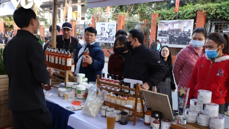 (VOVWORLD) - ງານມະໂຫລານໂດຍມີການເຂົ້າຮ່ວມຂອງ 87 ໝູ່ບ້ານອາຊີບ, ສະຫະກອນ ທີ່ມາຈາກ 13 ແຂວງ, ນະຄອນໃນທົ່ວປະເທດ, ນຳເຂົ້າບັນດາສິ່ງຍອດຍິ່ງດ້ານອາຫານການກິນຂອງທັງພາກເໜືອ, ພາກກາງ, ພາກໃຕ້.