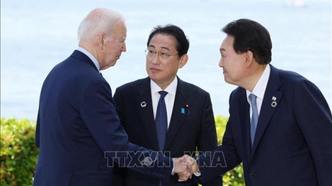 (VOVWORLD) - ກອງປະຊຸມສຸດຍອດ ອາເມລິກາ - ຍີ່ປຸ່ນ - ສ.ເກົາຫຼີ ສ້າງຂີດໝາຍເປັນຄັ້ງທຳອິດ ທີ່ທ່ານປະທານາທິບໍດີ Biden ໃຫ້ການຕ້ອນຮັບບັນດາການນຳຕ່າງປະເທດ ມາຍັງ ຄ້າຍ David ນັບແຕ່ເວລາທ່ານດຳລົງຕຳແໜ່ງໃນປີ 2021.