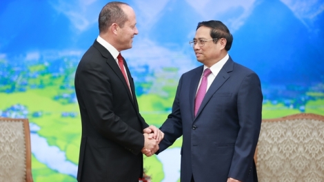 ນາຍົກລັດຖະມົນຕີ ຫວຽດນາມ ຟ້າມມິງຈິງ ຕ້ອນຮັບລັດຖະມົນຕີເສດຖະກິດ ແລະ ອຸດສາຫະກຳ ອິດສະຣາແອນ Nir Barkat