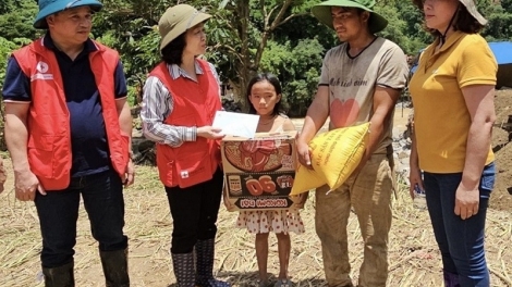 ສະພາກາແດງໜູນຊ່ວຍປະຊາຊົນທີ່ຖືກຜົນເສຍຫາຍຍ້ອນຝົນຕົກນ້ຳຖ້ວນຢູ່ ອຽນບ໋າຍ