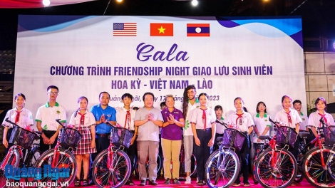 (VOVWORLD) - ຕອນບ່າຍວັນທີ 17 ກໍລະກົດ, ຢູ່ຫາດຊາຍທະເລ ໝີເຄ, ຕາແສງ ຕິ້ງເຄ, ນະຄອນ ກ໋ວາງຫງາຍ ໄດ້ດຳເນີນໂຄງການ Friendship Night ພົບປະແລກປ່ຽນນັກສຶກສາ ອາເມລິກາ - ຫວຽດນາມ - ລາວ.