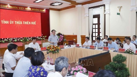 (VOVWORLD) - ໂດຍສືບຕໍ່ການຢ້ຽມຢາມບັນດາແຂວງພາກກາງ, ໃນຕອນເຊົ້າວັນທີ 16 ກໍລະກົດ, ຢູ່ນະຄອນ ເຫວ້, ທ່ານປະທານສະພາແຫ່ງຊາດ ເວືອງດີງເຫ້ວ ໄດ້ມີການເຮັດວຽກກັບການນຳແຂວງ ເທື່ອທຽນເຫ້ວ ກ່ຽວກັບການກໍ່ສ້າງ ແລະ ພັດທະນາຂອງແຂວງຮອດທ້າຍປີ 2030. ວິໄສທັດເຖິງ 2045; ທົດລອງບາງກົນໄກ ແລະ ນະໂຍບາຍສະເພາະໃຫ້ແກ່ການພັດທະນາຂອງແຂວງເທື່ອທຽນເຫ້ວ.
