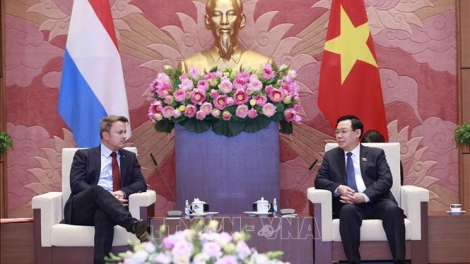 (VOVWORLD) - ຕອນບ່າຍວັນທີ 4 ພຶດສະພາ, ຢູ່ຮ່າໂນ້ຍ, ທ່ານປະທານສະພາແຫ່ງຊາດ ເວືອງດິ່ງເຫວະ ໄດ້ໃຫ້ການຕ້ອນຮັບທ່ານນາຍົກລັດຖະມົນຕີ ລຸກຊຳບວກ Xavier Bettel ພວມມີການຢ້ຽມຢາມ ຫວຽດນາມ ຢ່າງເປັນທາງການ.