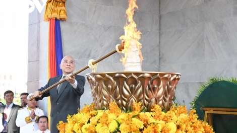 (VOVWORLD) - ພາຍຫຼັງພິທີເຄົາລົບທຸກຊາດ, ກະສັດ Norodom Sihamoni ໄດ້ວາງພວງມາລາອາໄລຫາບັນດານັກວິລະຊົນ, ນັກຮົບເສຍສະຫຼະຊີວິດເພື່ອຊາດ...
