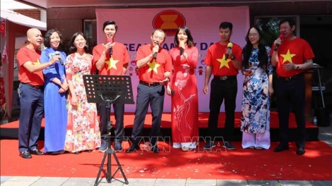 (VOVWORLD) - ເຂດວັດທະນະທຳ ອາຊີຕາເວັນອອກ ທີ່ຄຶກຄື້ນມ່ວນຊື່ນໄດ້ຮັບການວາດພາບຂຶ້ນໃນວັນຄອບຄົວ ອາຊຽນ ທີ່ຖືກຈັດຂຶ້ນຢູ່ ບຣຸກແຊັນ, ປະເທດ ແບນຊິກ, ສ້າງຂີດໝາຍ 58 ປີແຫ່ງວັນສ້າງຕັ້ງ ອາຊຽນ.