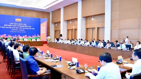 (VOVWORLD) - ທ່ານປະທານສະພາແຫ່ງຊາດ ຫວຽດນາມ ເຈິ່ນແທັງເໝິ້ນ ໄດ້ຢັ້ງຢືນ ບັນດາໝາກຜົນຂອງການເຄື່ອນໄຫວຂອງສະພາແຫ່ງຊາດ, ຄະນະປະຈຳສະພາແຫ່ງຊາດໃນໄລຍະຜ່ານມາມີການປະກອບສ່ວນຢ່າງໃຫຍ່ຫຼວງທີ່ສຸດຂອງອົງການສື່ມວນຊົນ, ບັນດານັກຂ່າວ, ບັນນາທິການ, ນັກຖ່າຍທຳ.