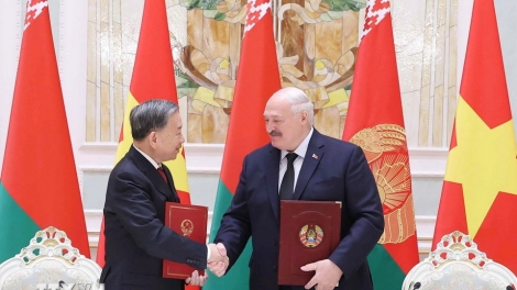 (VOVWORLD) -ວັນທີ 12 ພຶດສະພານີ້, ໃນຂອບເຂດການຢ້ຽມຢາມທາງລັດຖະກິດຢູ່ສາທາລະນະລັດເບລາຣຸດ, ຢູ່ນະຄອນຫຼວງ Minsk, ພາຍຫຼັງພິທີຕ້ອນຮັບຢ່າງສົມກຽດທີ່ທຳນຽບເອກະລາດ, ທ່ານເລຂາທິການໃຫຍ່ ໂຕເລີມ ໄດ້ມີການເຈລະຈາກັບປະທານາທິບໍດີເບລາຣຸດ A. Lukashenko.