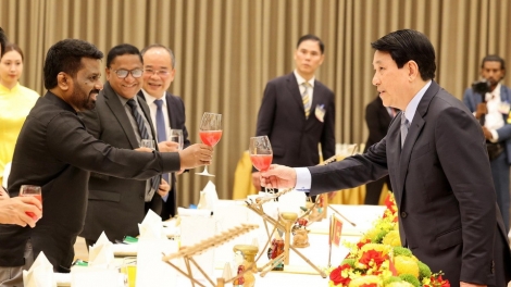 (VOVWORLD) - ຕອນຄ່ຳວັນທີ 5 ພຶດສະພາ ຢູ່ສູນກອງປະຊຸມສາກົນ ທີ່ ຮ່າໂນ້ຍ, ເມື່ອເຂົ້າຮ່ວມງານລ້ຽງໂດຍທ່ານປະທານປະເທດ ຫວຽດນາມ ເລືອງເກື່ອງ ເປັນເຈົ້າພາບ, ທ່ານປະທານາທິບໍດີ ສີລັງກາ ສະແດງຄວາມຂອບອົກຂອບໃຈການຕ້ອນຮັບອັນອົບອຸ່ນທີ່ສະຫງວນໃຫ້ແກ່ສ່ວນຕົວທ່ານ ແລະ ຄະນະຜູ້ແທນ ສີລັງກາ.