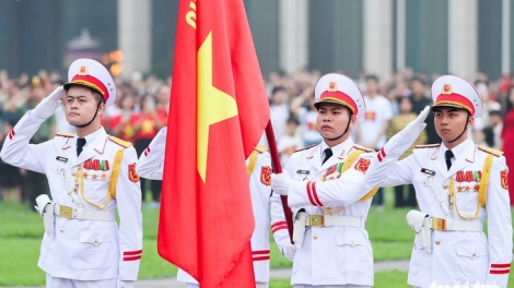 (VOVWORLD) - ມີຊາວນະຄອນຫຼວງ ແລະ ແຂກທ່ອງທ່ຽວນັບຮ້ອຍຄົນໄດ້ເຕົ້າໂຮມມາແຫ່ງນີ້, ຖືທຸງຊາດໃນມື, ເຫັນປະຈັກຕາພິທີທີ່ສັກສິດ: ພິທີຊັກທຸງໃນຍາມຕົ້ນມື້