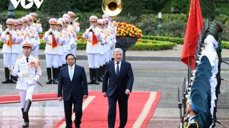 (VOVWORLD) - ນີ້ແມ່ນການຢ້ຽມຢາມ ຫວຽດນາມ ຄັ້ງທຳອິດຂອງທ່ານນາຍົກລັດຖະມົນຕີ ກຽກກີສະຖານ ນັບແຕ່ເມື່ອສອງປະເທດສ້າງຕັ້ງສາຍພົວພັນທາງການທູດ. ການຢ້ຽມຢາມໄດ້ປະກອບສ່ວນຊຸກຍູ້ການພົວພັນມິດຕະພາບ ຫວຽດນາມ ກຽກກີສະຖານ, ນຳການພົວພັນລະຫວ່າງສອງປະເທດເຂົ້າສູ່ລວງເລິກໃນທຸກຂົງເຂດ.